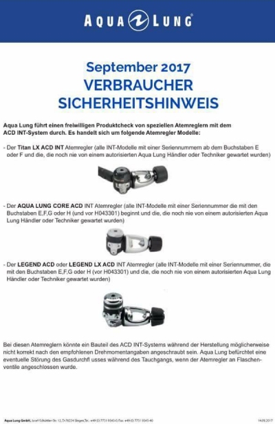 Zeitraum (1.10.2017 - 25.05.2018) einen Oceanic oder Hollis Regler